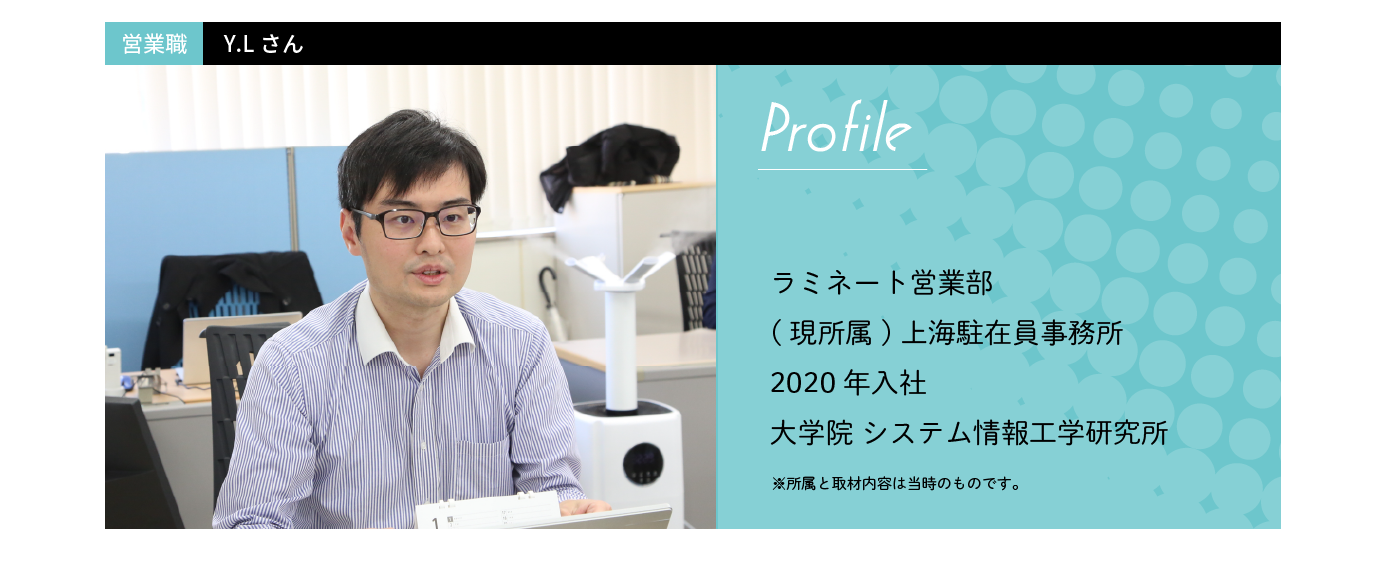 それに加え、海外で新規開拓の予定があり自分の語学力を生かせることと、何より面接の雰囲気がとてもよかったので、この会社ならいい仲間とやりがいを感じて働けるなと確信めいたものがありました。